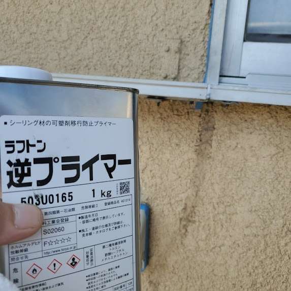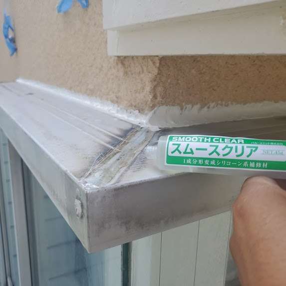 シーリング部分の処理 → シリコンシーリングは塗料が密着しにくいので、可能な限り撤去。残す場合は「シリコンプライマー」や「逆プライマー」を使用し、塗料の付着性を高めました。