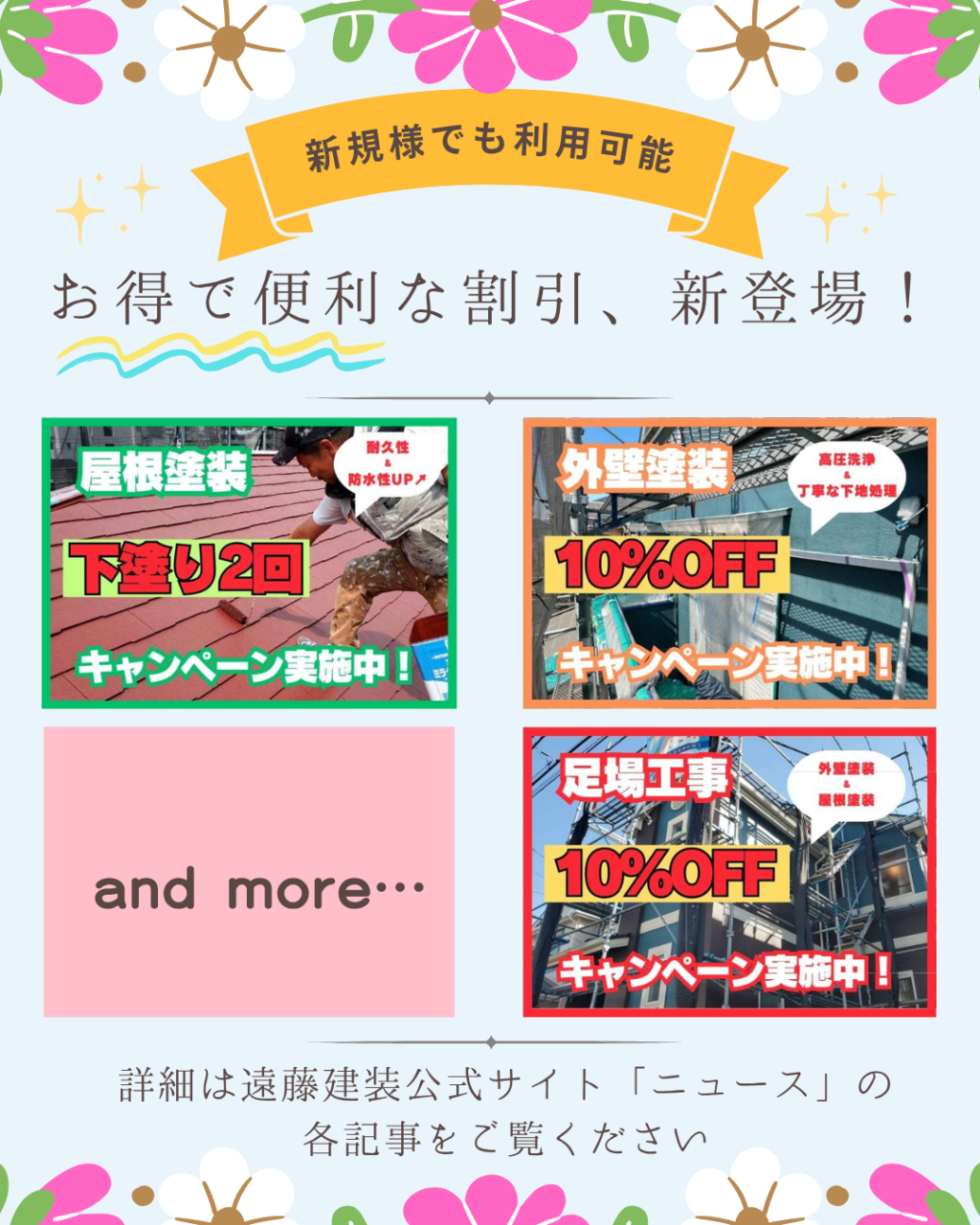 千葉県市川市の遠藤建装では、皆さまに安心してご依頼いただけるよう、お得なキャンペーンやサービスのこだわりを積極的にご紹介しています!