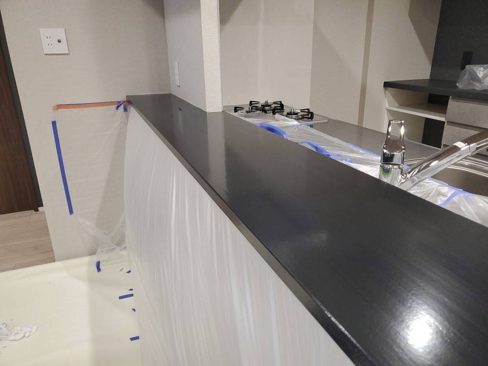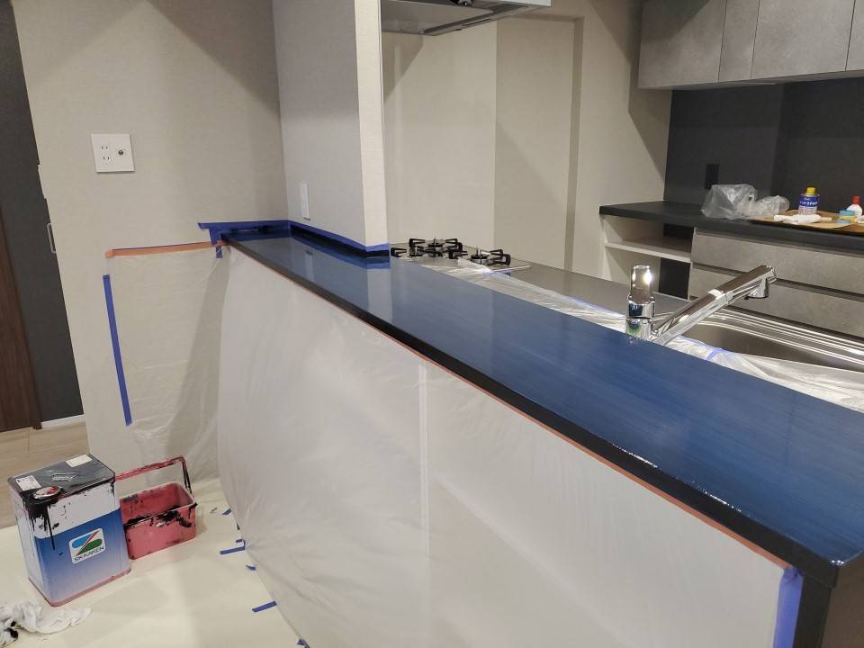 カウンターキッチンの内装塗装作業の概要
