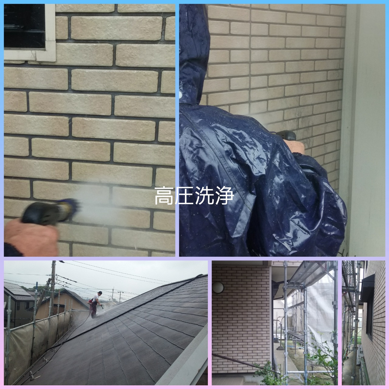 戸建ての足場工事から高圧洗浄(千葉県市川市) 2019/08/19 本日から、作業乗り込み現場友人の紹介のお宅です。写真は、足場工事完了の時撮りました!50坪以上のお宅なので、やりがえありますね、足場職人も、いつもは、2人でやることが多いのですが、今回は、4人で、夜までやってます。お疲れ様です。遠藤建装では、足場は、ほぼビケ足場を使わせてもらってます!最近は、ビケ足場で、マンション10階建てもよくやってますね。 足場仮設後の『高圧洗浄』です。屋根足場無しという大変な状態での、作業で、職人さんごめんなさい❗さすがに傾斜がきついのでロープ作業になりました。自衛隊特殊部隊みたいで、かっこいいです。 高圧洗浄 足場工事 戸建て