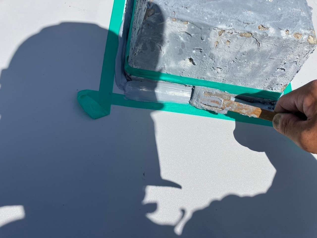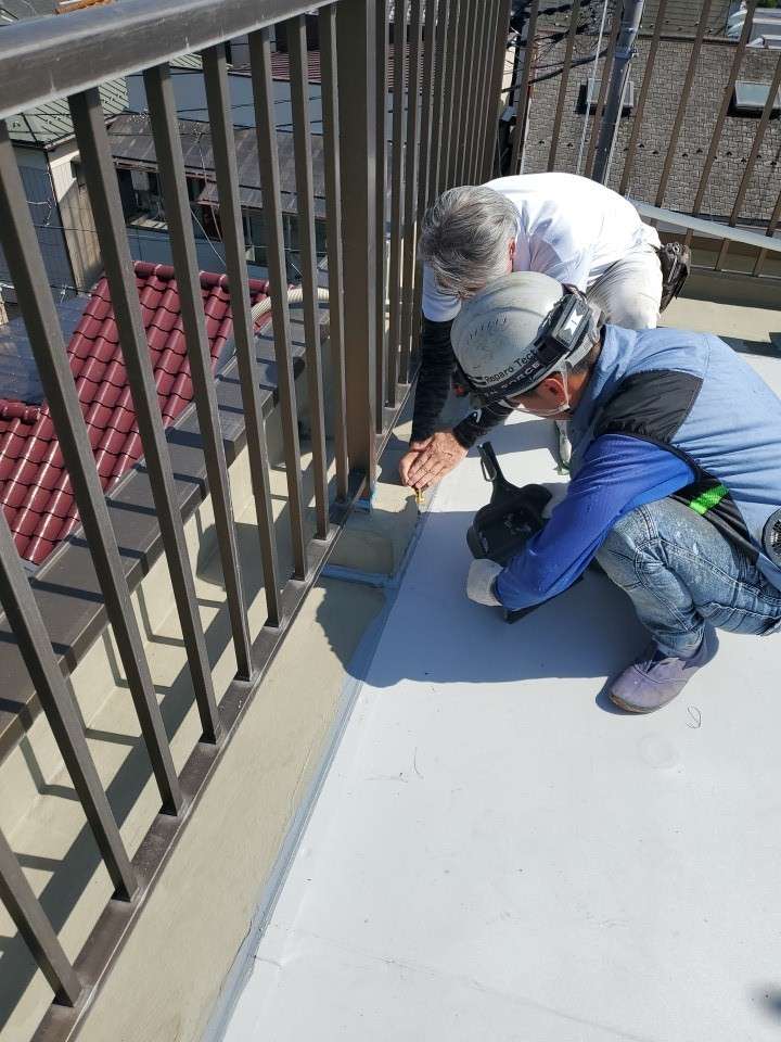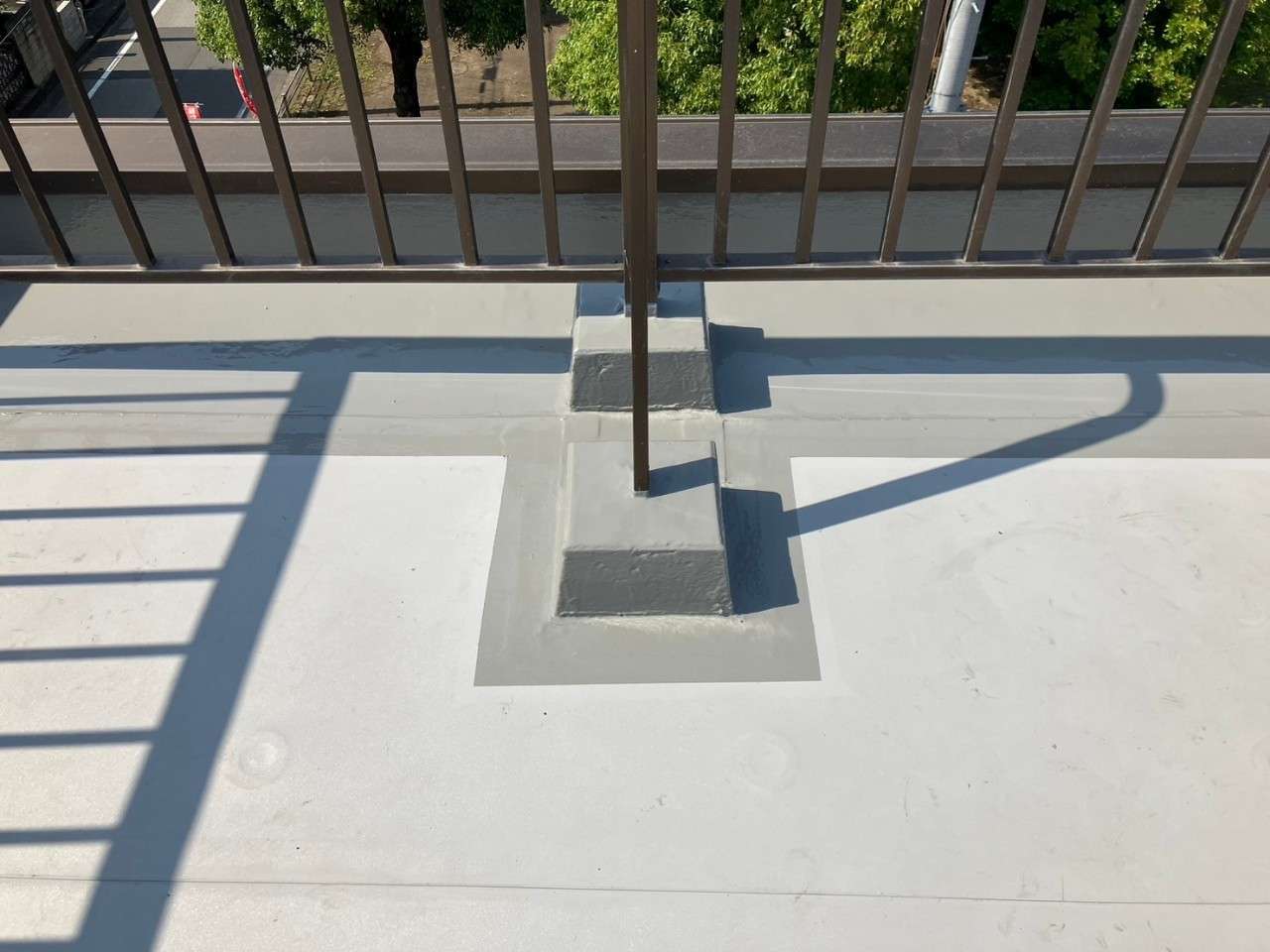 下地が浮きがあり、ウレタン防水だと膨れる可能性があったので、平場はシート防水で施工してます。