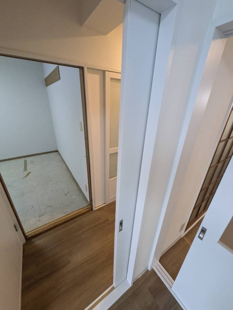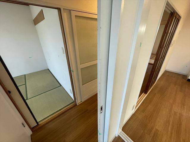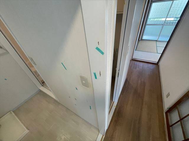 3DKの部屋の壁や天井に小さなひび割れや傷があったため、パテで補修し、仕上げに塗装を施しました。小さな傷やひび割れをそのままにしておくと、汚れが溜まりやすくなるため、早めの補修がポイントです。