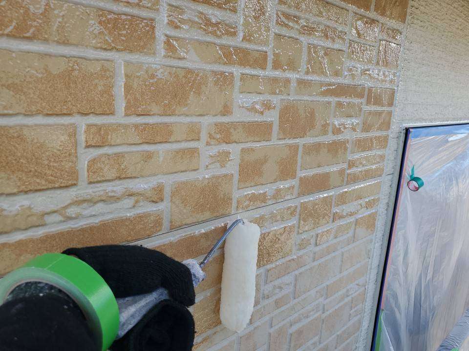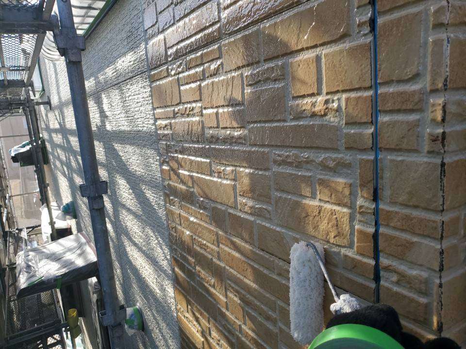 専用シーラーで下地を固めた後、中塗り・上塗りの三工程で施工しました。
