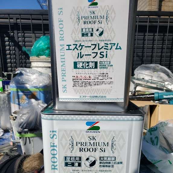 屋根はコロニアル材のため、下塗り2回でしっかり吸い込み止めを実施。