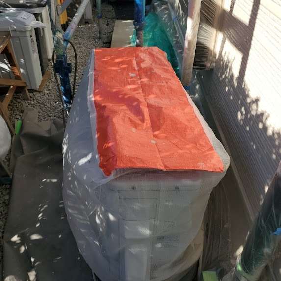 養生とは、塗料が窓や植栽など「汚れて困る場所」に飛び散らないよう保護する作業のことです。工程はこんな感じ👇